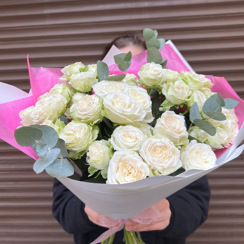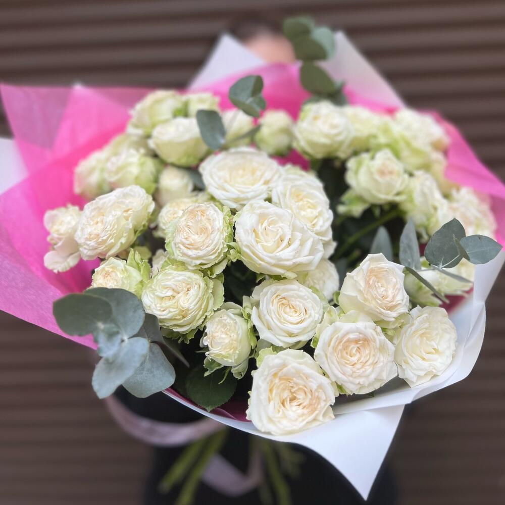 Эвкалипт – 5 шт.Тишью – 1 шт.Пленка матовая – 2 шт.бомбастик белая – 9 шт.лента атлсная – 1 шт.