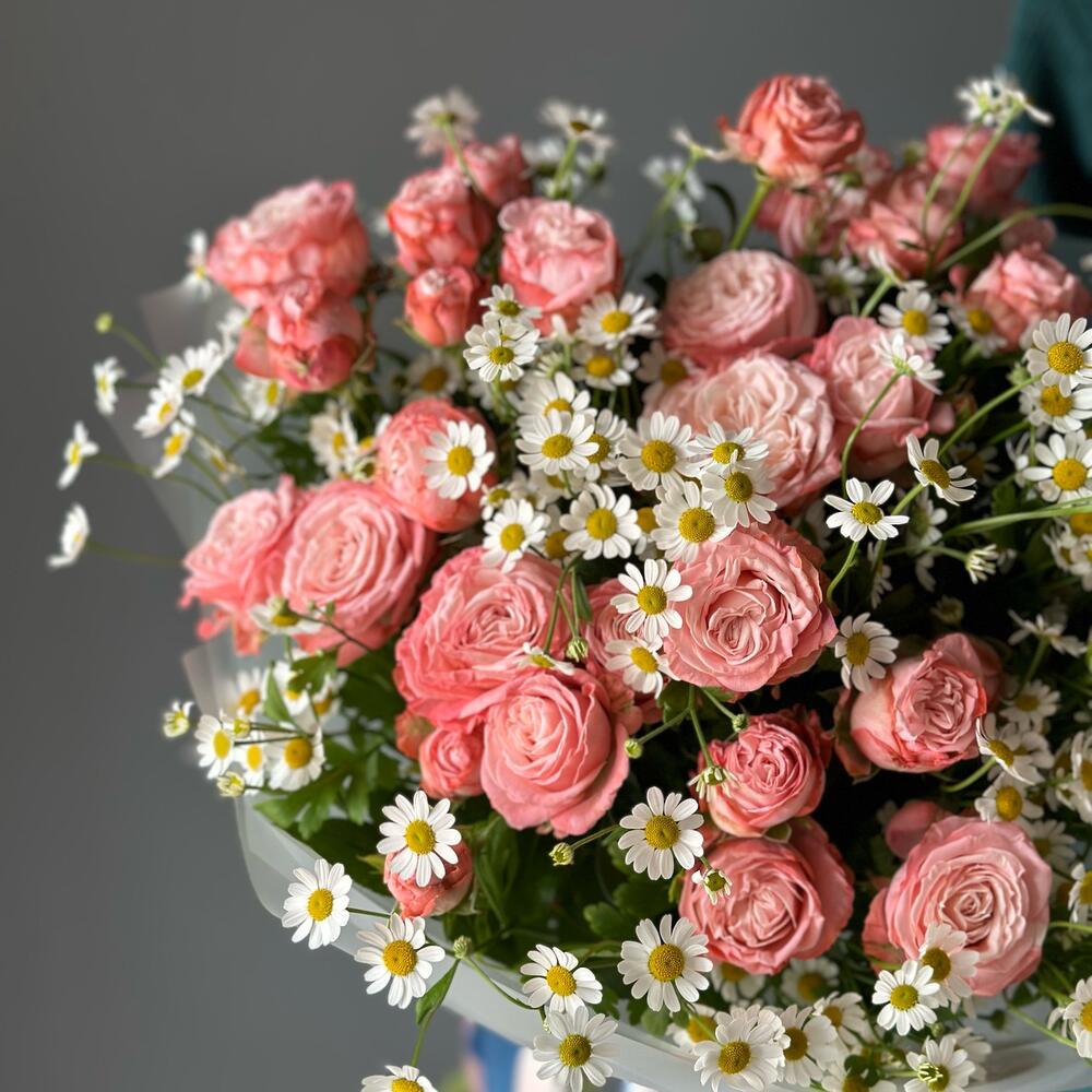 Букет из кустовой розы Бомбастик и Ромашки Матрикарии