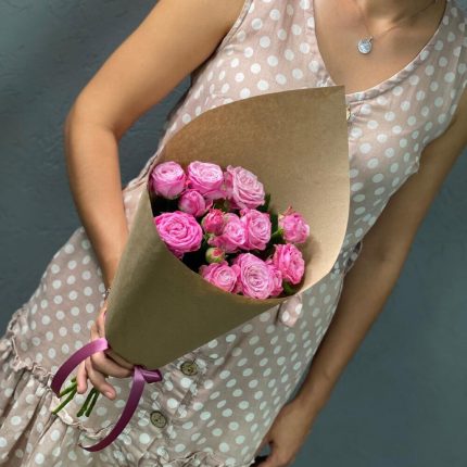 Букет пионовидных роз нежного, кремового оттенка бережно упакованные в крафт упаковку. Пионовидные розы считаются символом романтики и верности. Их полные бутоны отображают множество ярких чувств и любви. Благодаря своей редкой расцветке, превосходным эстетическим данным и аромату их относят к самым красивым сортам.