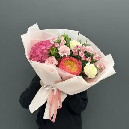 Букет из гортензии и пионовидных роз