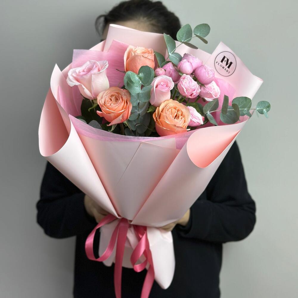 Гвоздики, Кустовые розы, Лизиантусы, Пионовидные розы, Розы