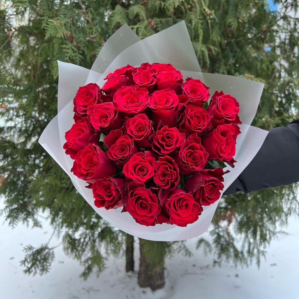 Роза красная 40 см – 25 шт.Пленка матовая – 2 шт.
