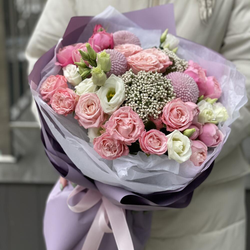 Категорий: Кустовые розы, Лизиантусы, Пионовидные розы, Розы, Хризантемы