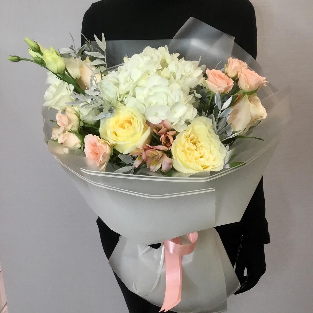 Букет с гортензией и розами «Янь»