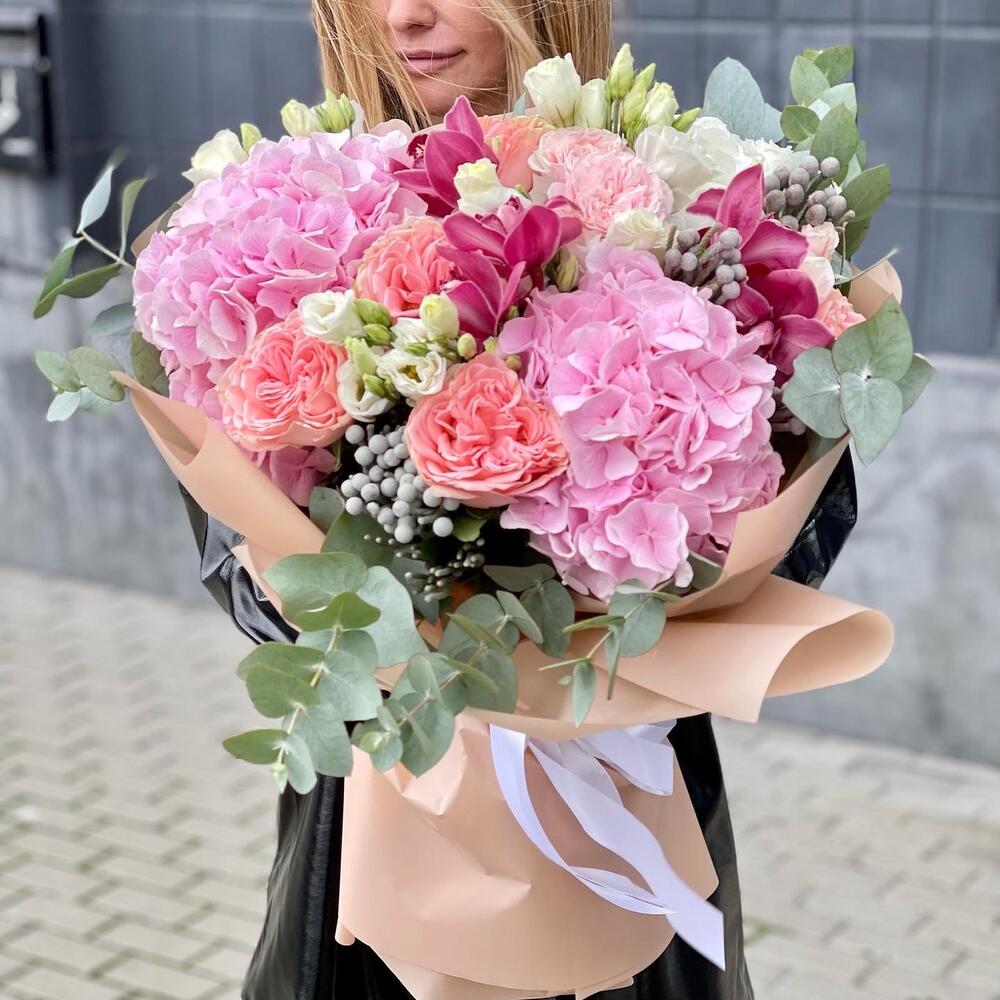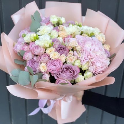 Букет из пионовидных, кустовых роз