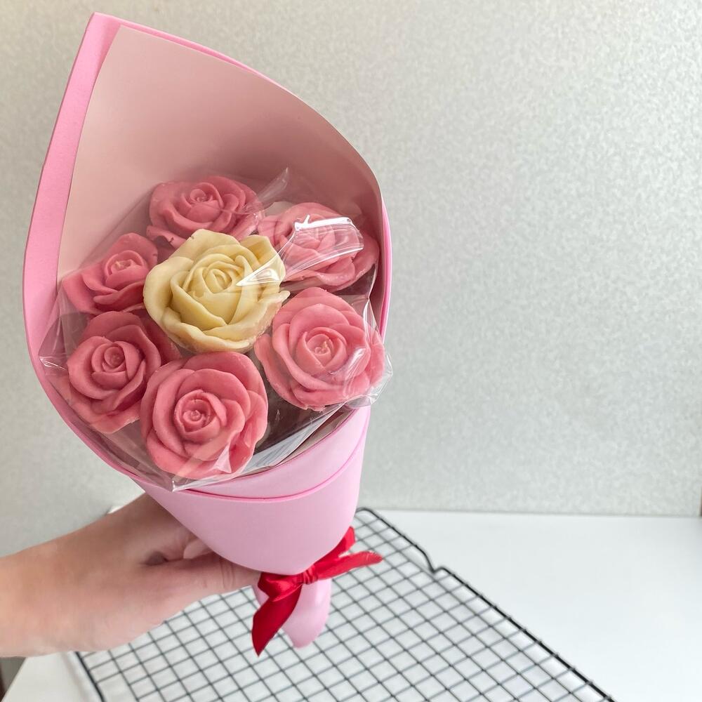 мини роза розовая – 6 шт.букетная роза – 1 шт.