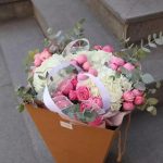 Гортензия – 3 шт. пионовидная спрей роза – 7 шт. Эвкалипт – 2 шт.