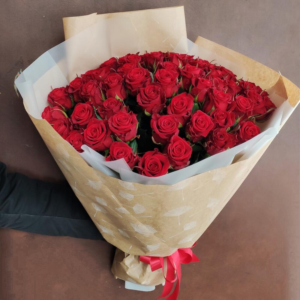 роза украинская красная – 51 шт. оформление бумага и калька – 1 шт.