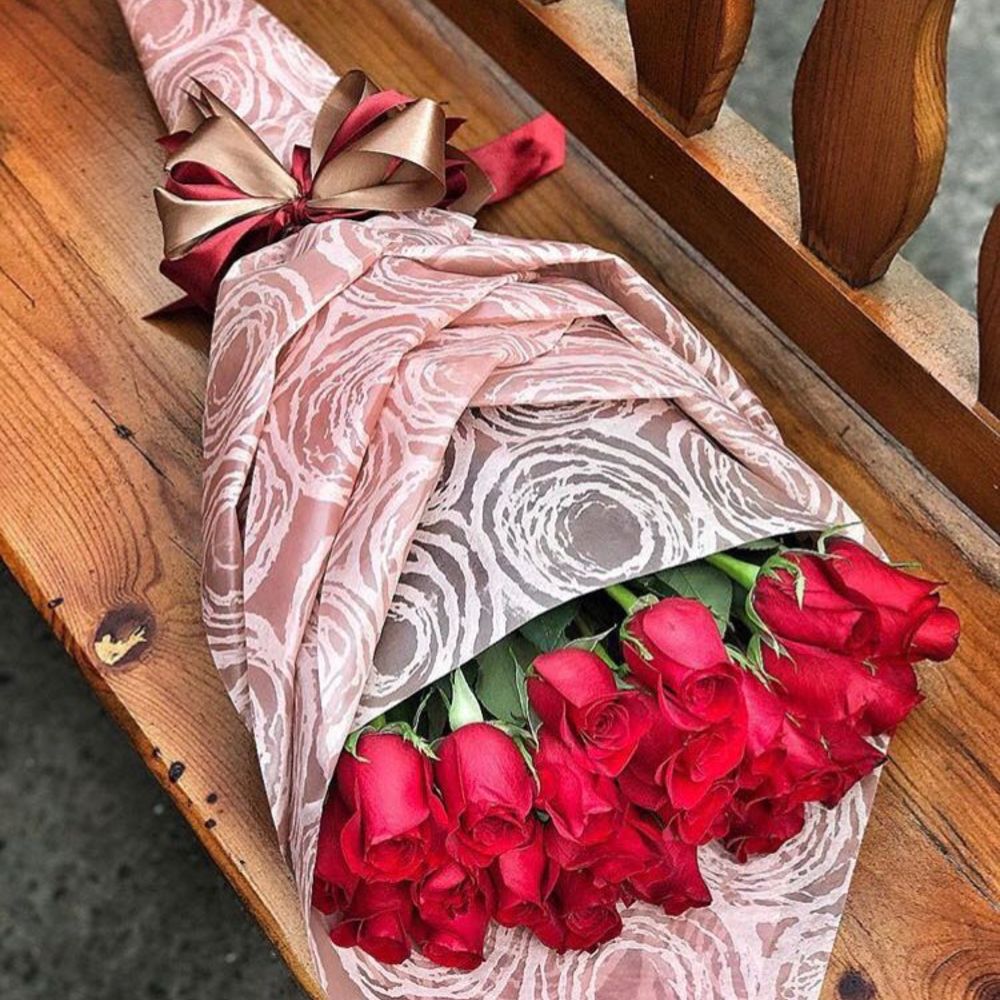 Лента – 2 шт. Крафт – 3 шт. Роза голландская 60 см – 31 шт.