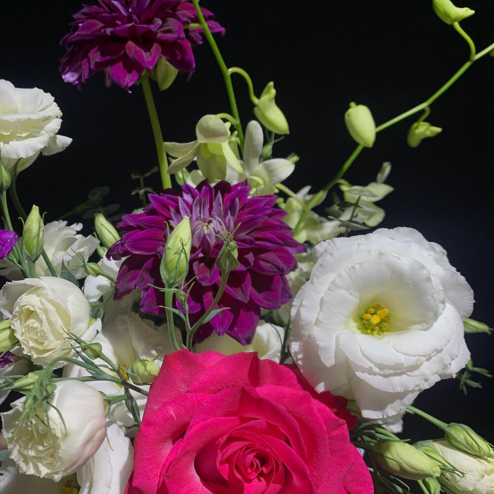 Гвоздики, Кустовые розы, Лизиантусы, Пионовидные розы, Розы