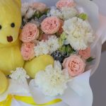 Нежная, чувственная и воздушная композиция с мишкой, выполненная из стокйих цветов: кустовой розы, сантини и диантусов.Такая композиция точно понравится яркой и энергичной получательнице, и будет долго радовать её.К композиции прилагается открытка с вашими пожеланиями и приятный комплимент от нашего магазина – шоколадка.Мы также будем рады отправить вместе с композицией конфеты, шоколад ручной работы или б/а вино по вашим пожеланиям, просто напишите нам в личные сообщения. Заказывая нашу композицию, Вы всегда получите исключительный сервис и заботу о клиенте