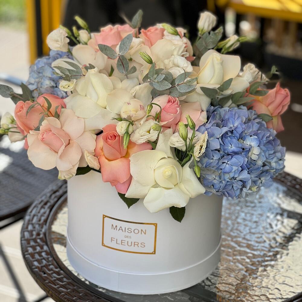 “Эвкалиптическая роскошь” гортензия и пионовидная кустовая роза