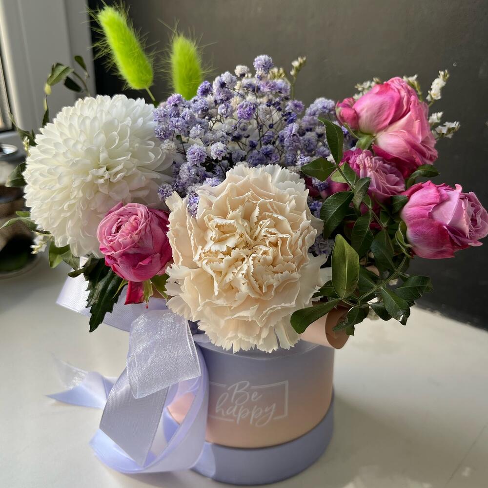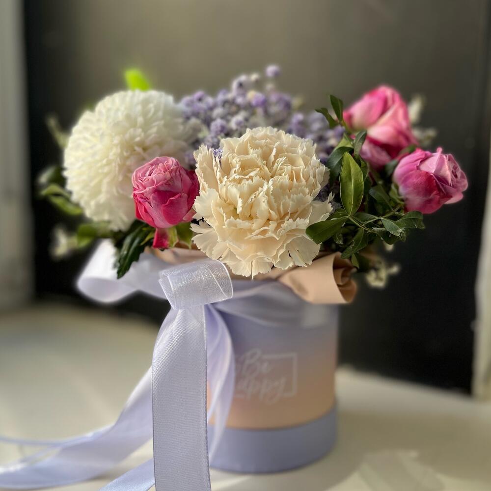 Альстромерии, Гвоздики, Кустовые розы, Лизиантусы, Розы, Хризантемы