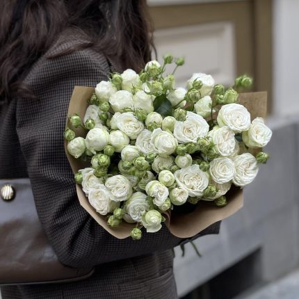 Пионовидная кустовая роза – 7 шт. Упаковка дизайнерская – 1 шт. Открыточка с вашими пожеланиями – 1 шт.