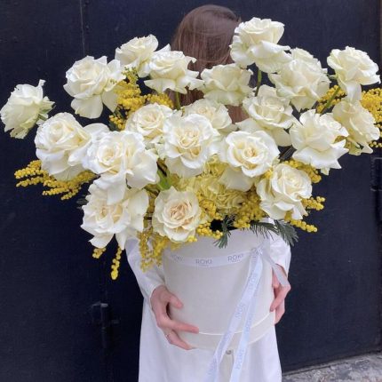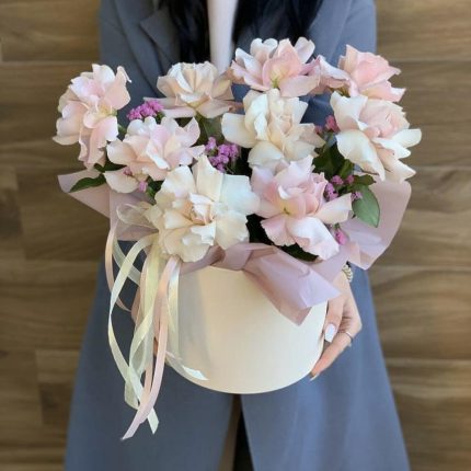 “Атлас☁️” – цветочная композиция с зефиром в деревянном ящике