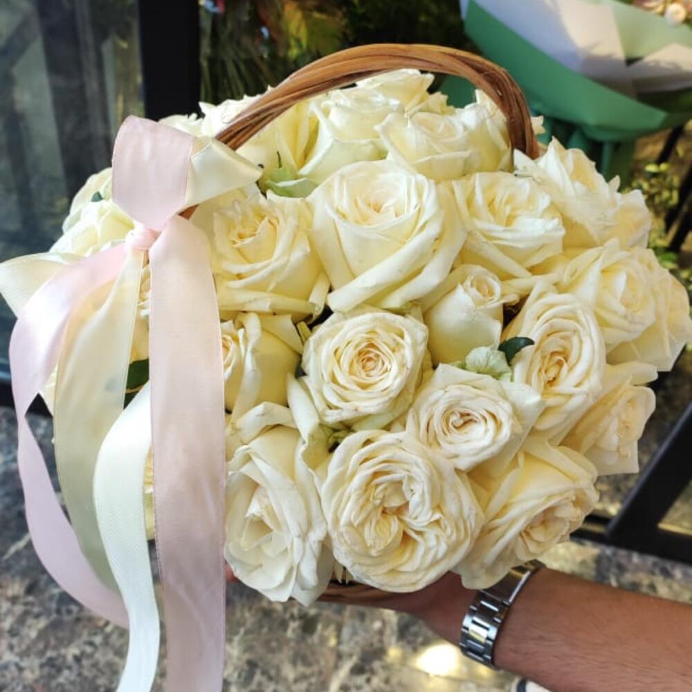 Метки: от 5000 руб, Роза 30 см, Розы в корзине, цветы в корзине