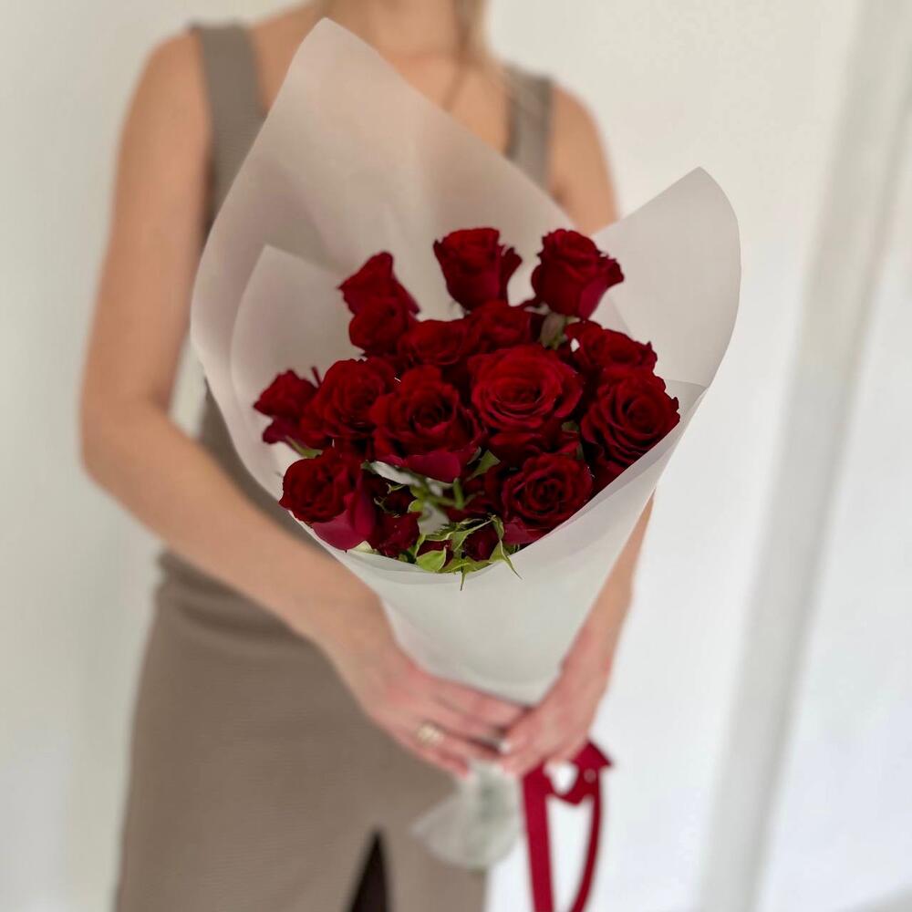 ЛЮБЛЮ 25 красных стойких роз в крафте