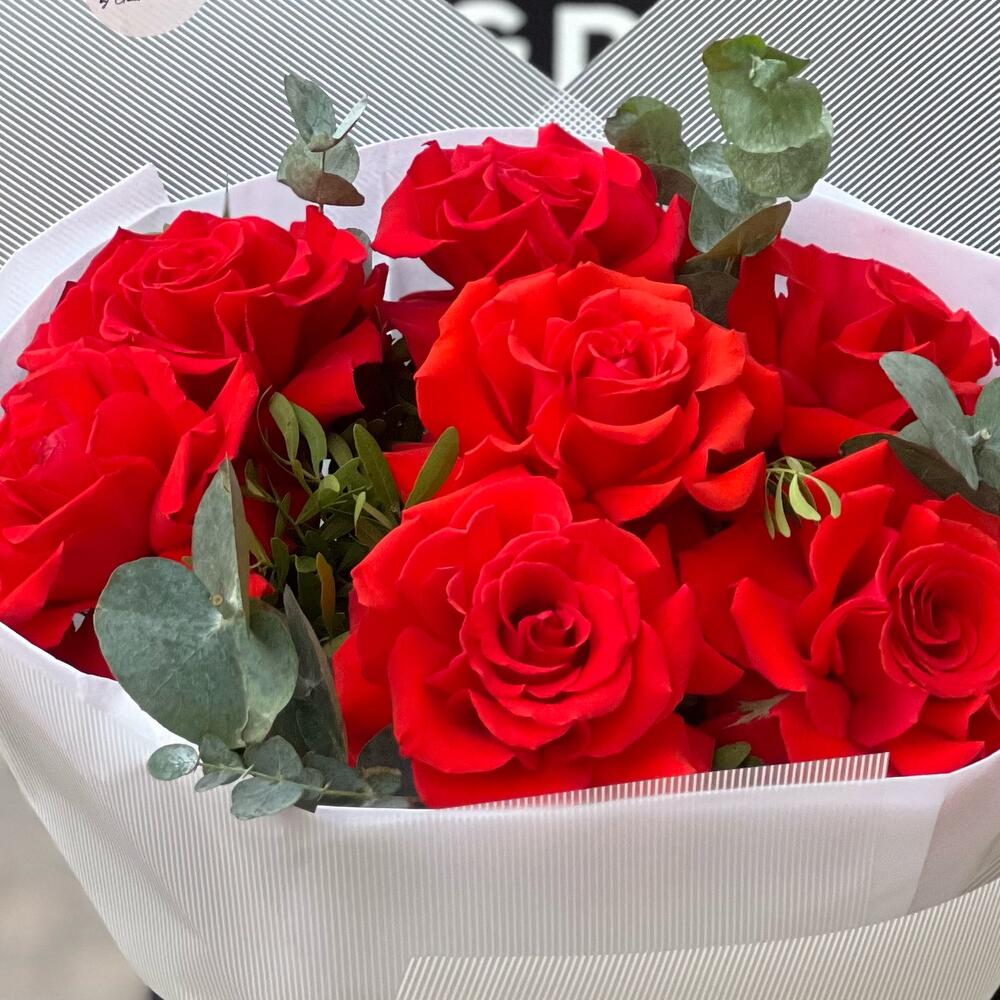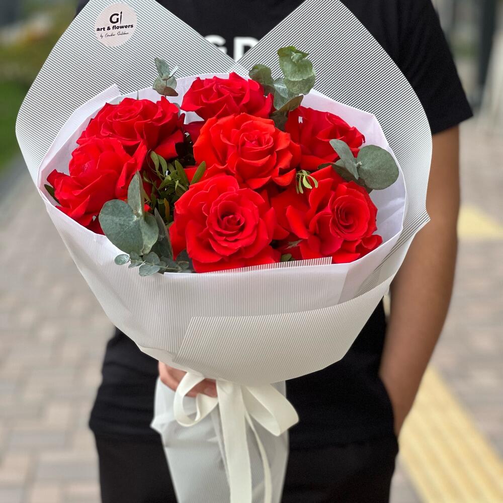 Моно-Букет из Красных Роз + открытка ручной работы в подарок