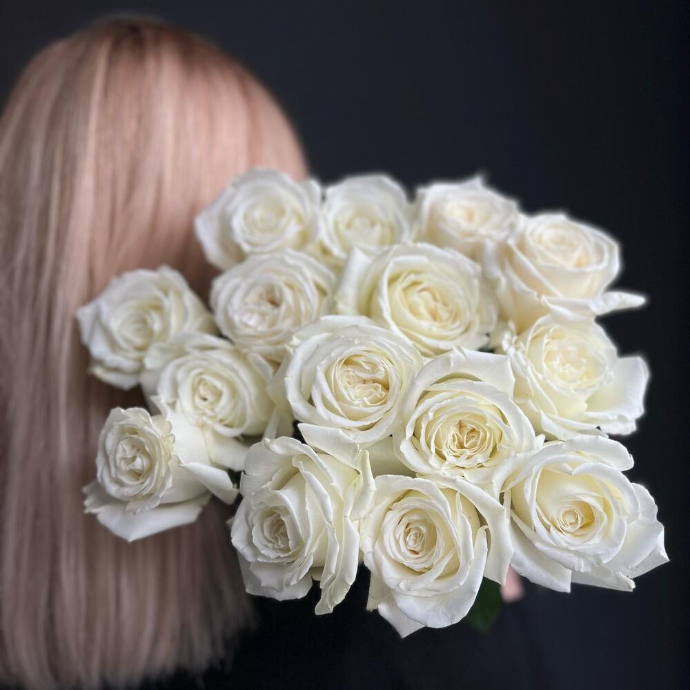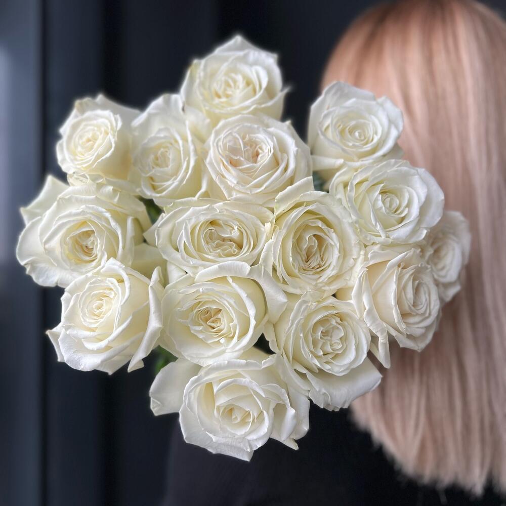 пионовидная роза плая бланка – 15 шт.Лента атласная – 1 шт.