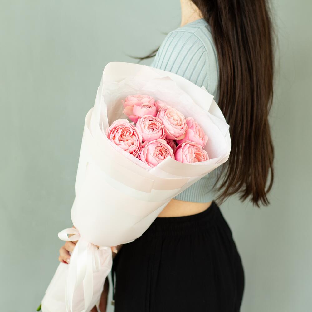 Нежный монобукет пионовидных кустовых роз Сильвия пинк в размере S