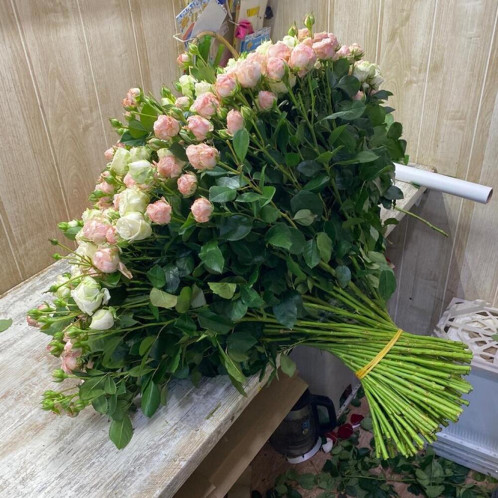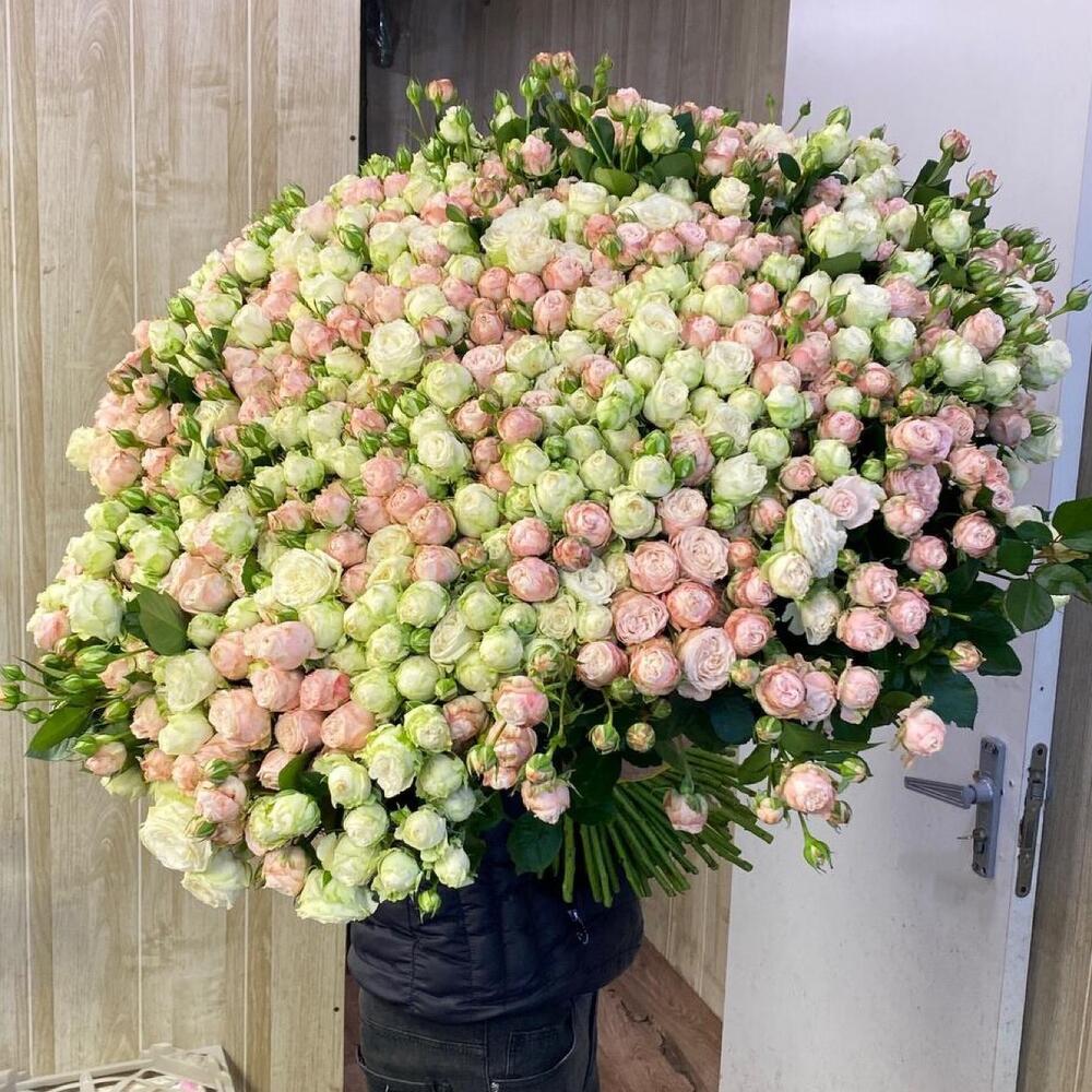 Роза бомбастик – 101 шт. Открыточка с вашими пожеланиями – 1 шт. доставка – 1 шт.
