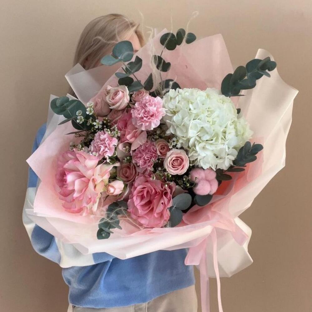 Букет из пионовидных роз Бомбастик и Мисти Баблс