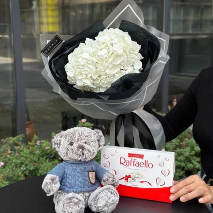 “Эвкалиптическая роскошь” гортензия и пионовидная кустовая роза