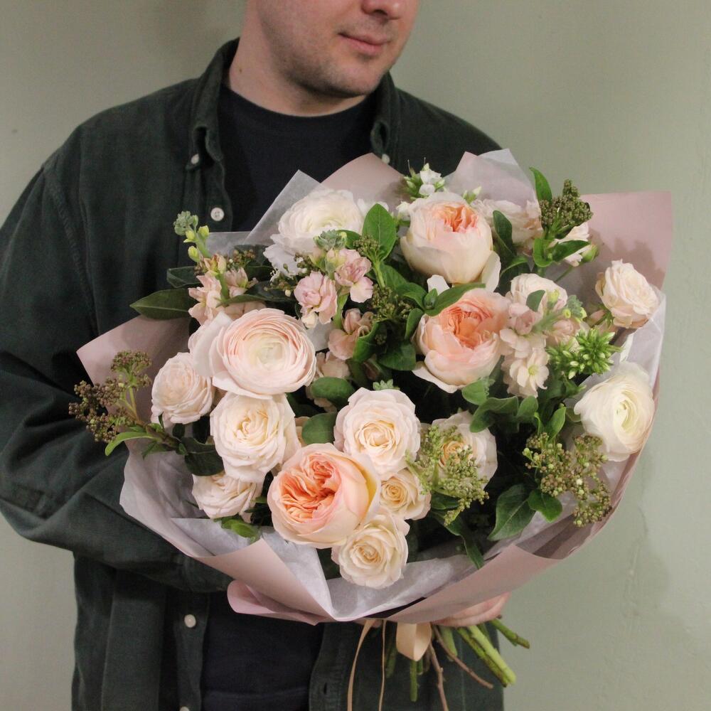 Вечерний сад – Букет с ранункулюсами и пионовидными розами