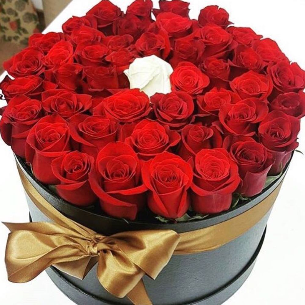 Лента – 1 шт. Роза Голландская – 41 шт. Шляпная коробка – 1 шт.