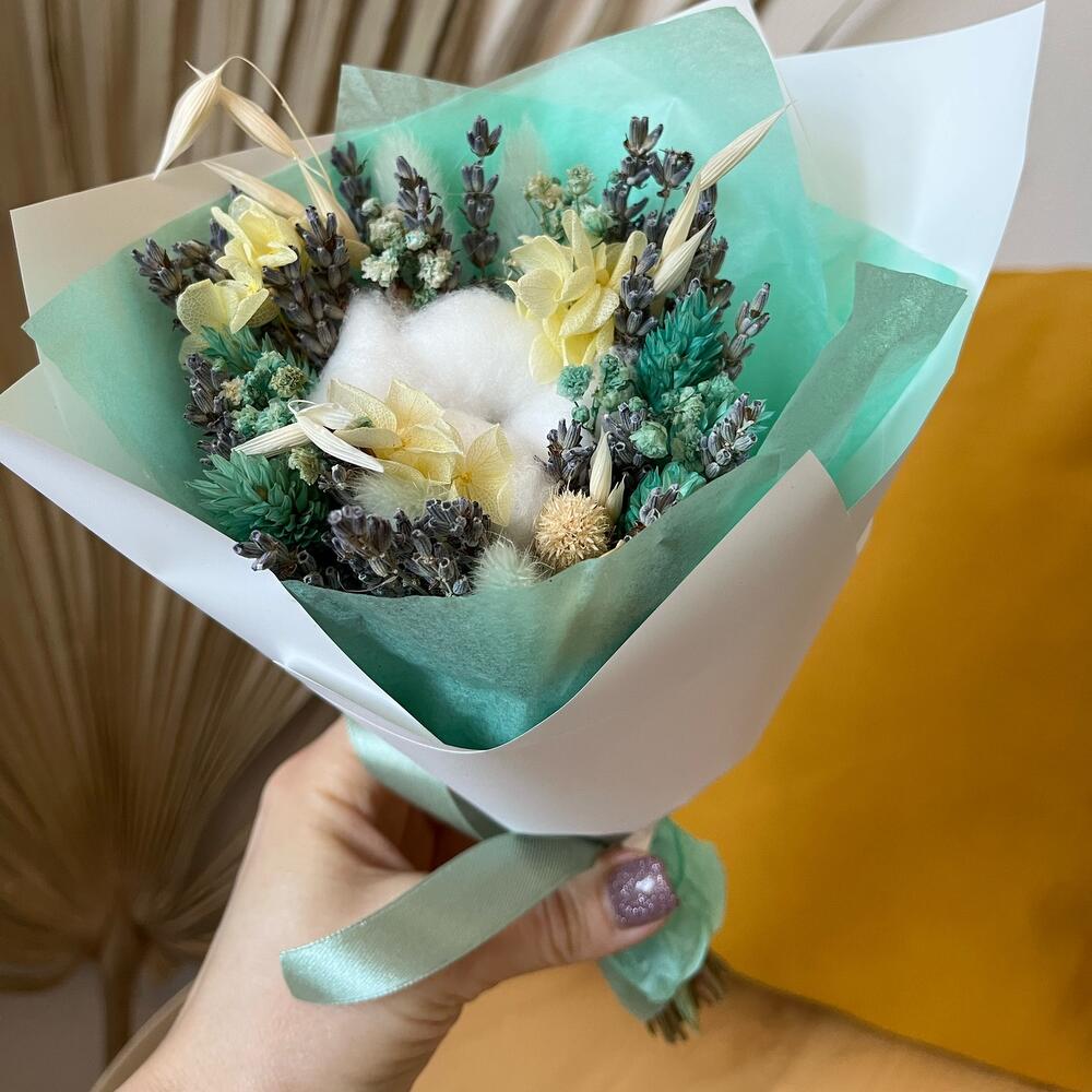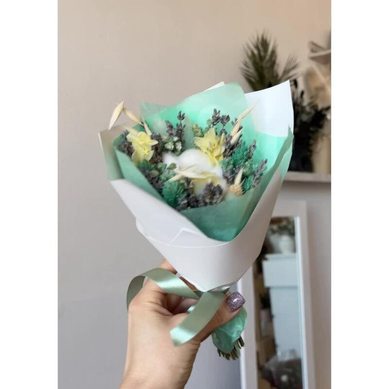 Букет - комплимент из сухоцветов с лавандой и желтым цветом