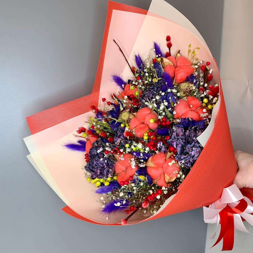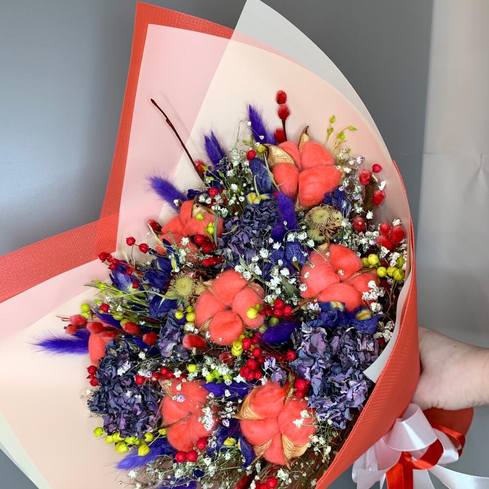 Хлопок и различные сухоцветыв красном️