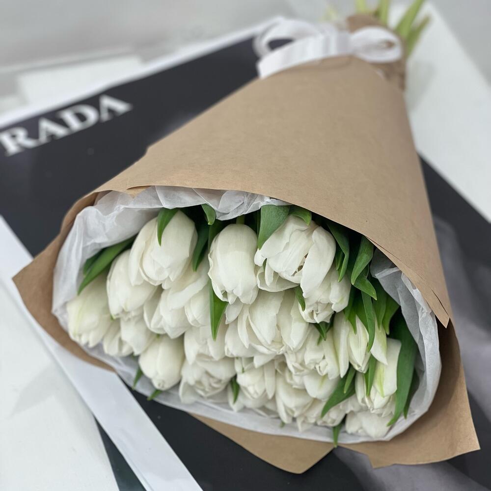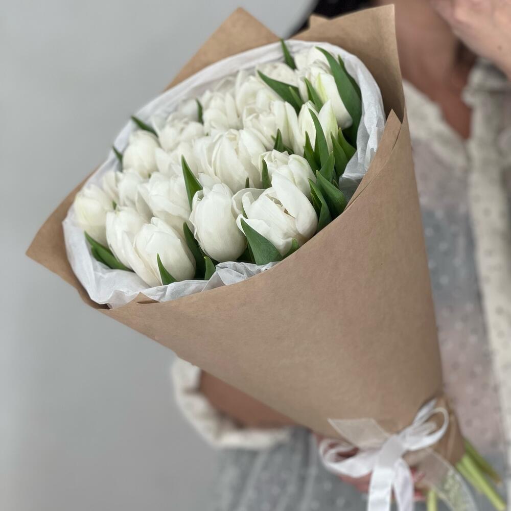 Лента – 2 шт.Упаковка – 2 шт.пионовидные тюльпаны белые – 25 шт.