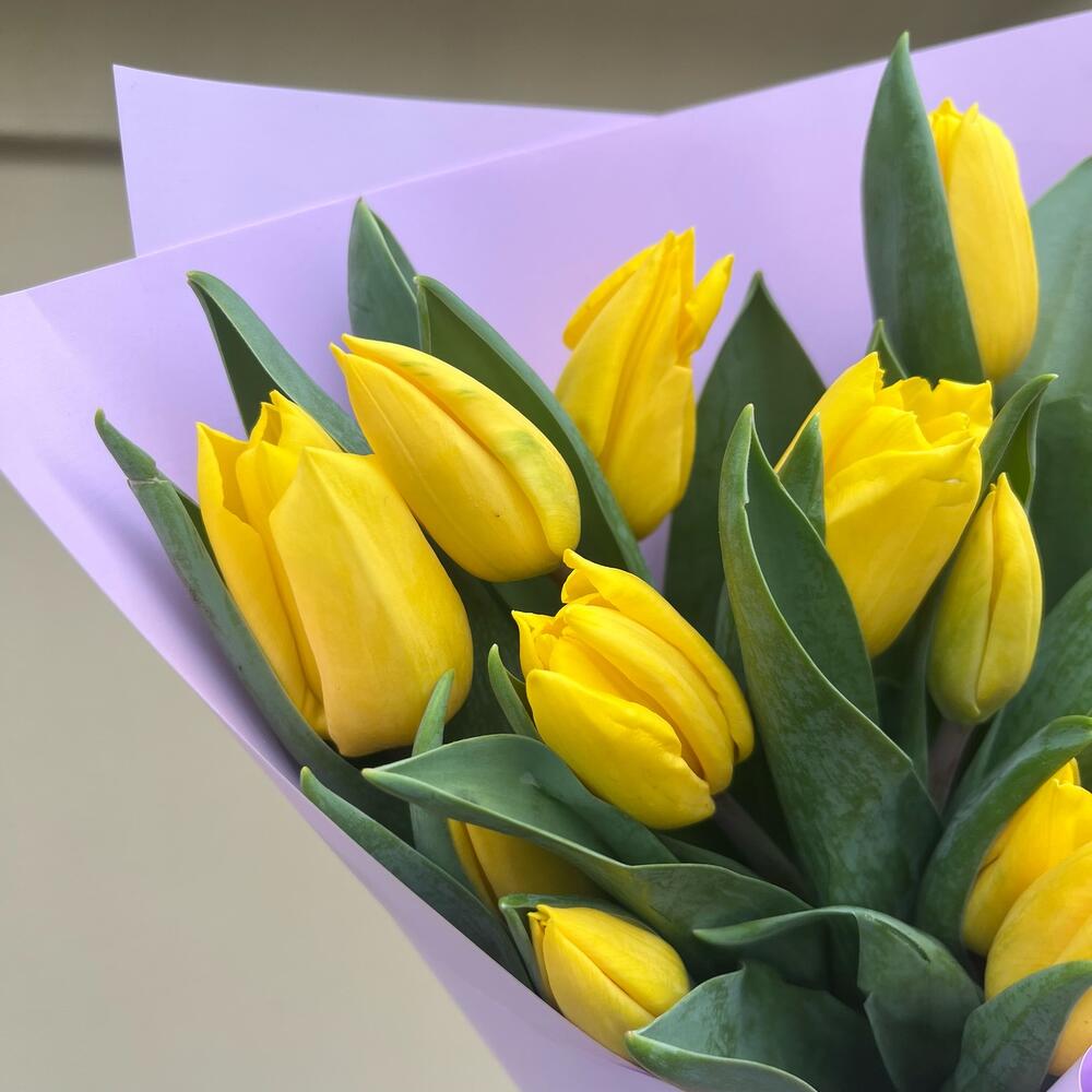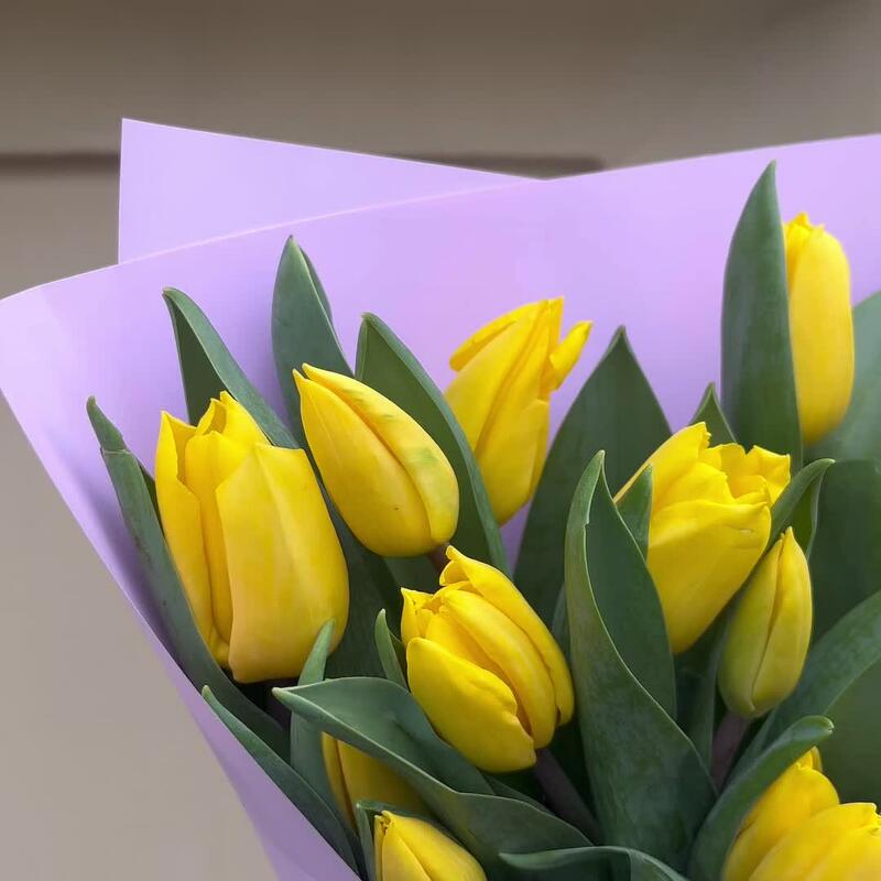 Тюльпан желтый – 15 шт.Упаковка корейская пленка – 1 шт.